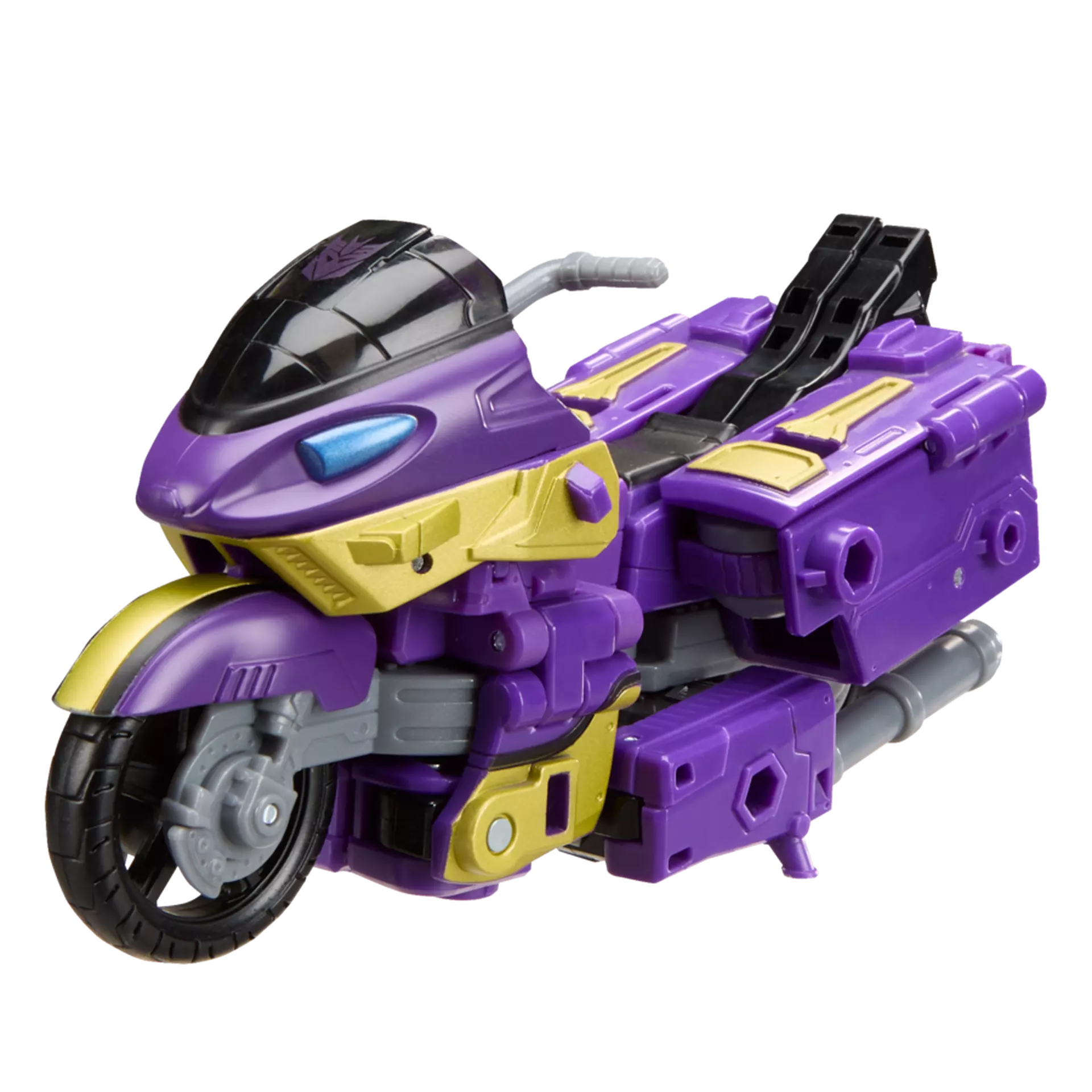 The 5.75-inch (14.5 cm) Voyager Class figure converts from robot action figure to motorcycle mode in 23 steps, and comes with 2 Mini-Con figures that combine to create Mini-Con Combiner Mirror, who can ride in motorcycle mode.