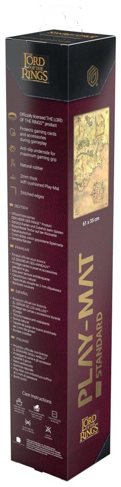 The 61x35cm Play-Mat from Ultimate Guard's official The Lord of the Rings™ edition "Places of Middle-earth" protects cards and sleeves while playing and improves the gaming experience thanks to its anti-slip underside, while the stitched edges guarantee an even longer service life.