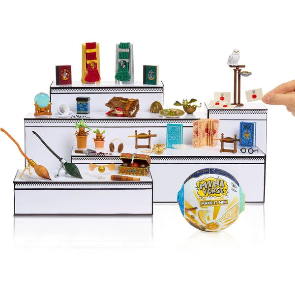 Crea i tuoi oggetti preferiti dei film di Harry Potter con il Miniverse Make It Mini Back to Hogwarts di MGA: fantastiche repliche a tema Harry Potter da creare, esporre, esporre e collezionare! Ogni palla contiene mini utensili e accessori realistici, dal set da Quidditch alla Nimbus 2000 alla sciarpa di Grifondoro. Ogni confezione contiene una sorpresa, quindi non saprai di quale mini replica si tratta finché non la disimballa. La palla in cui viene consegnata la miniatura si trasforma in una piccola aula - come esposizione per le miniature. Inoltre, ci sono accessori e accessori unici. Dagli occhiali di Harry a un mini quaderno di Serpeverde al terriccio per le mandragole, c'è così tanto da scoprire. Collezionali tutti: ci sono 12 versioni diverse.